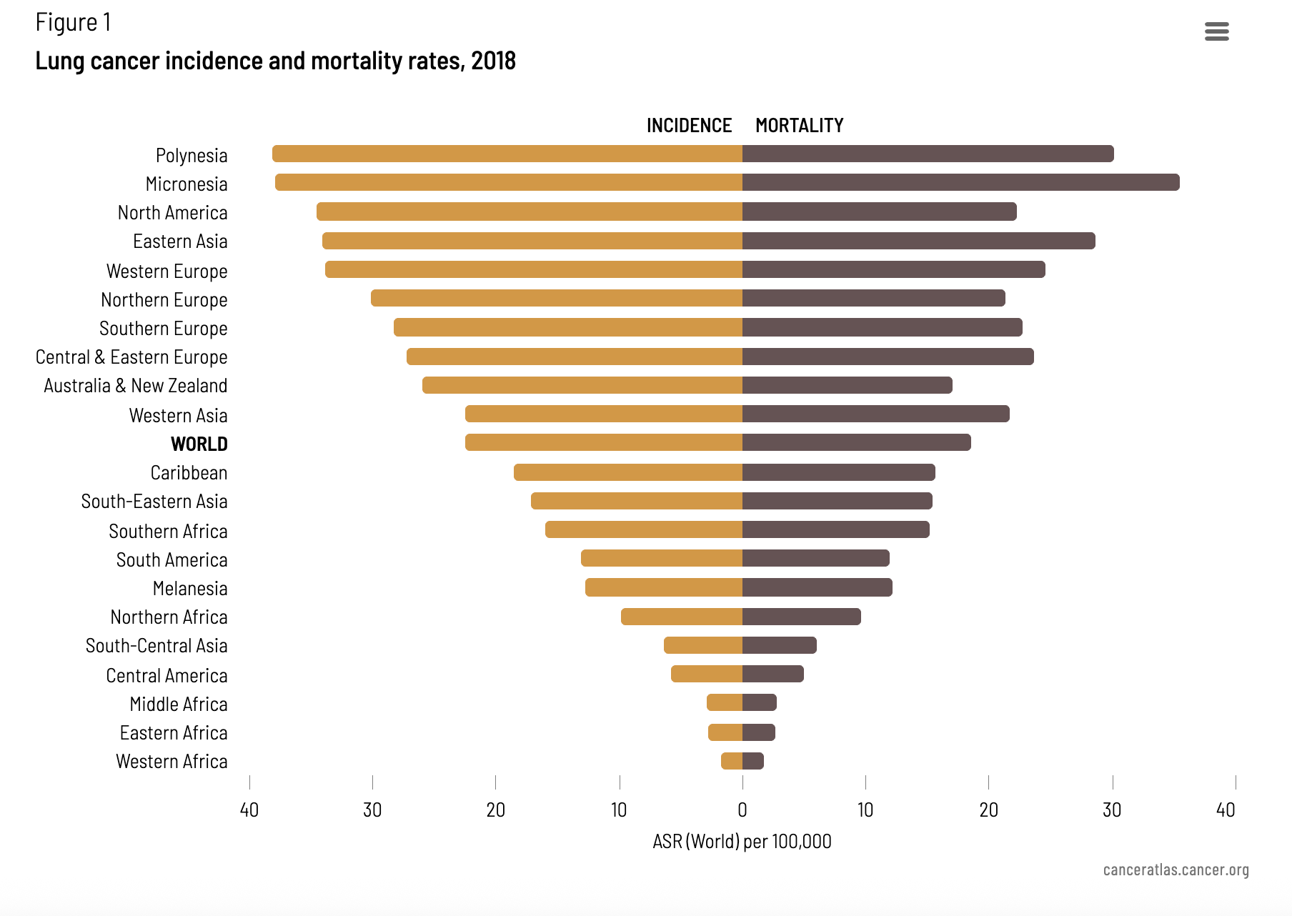 Northern Africa’s smoking rate is about the same as us and the Europeans, and they have way less lung cancer. The Caribbeans actually smoke more (14.4%) than the Americans, but have less lung cancer. Up to 3/4 of men in some Melanesian countries are smokers, and still, a lower lunger cancer rate.